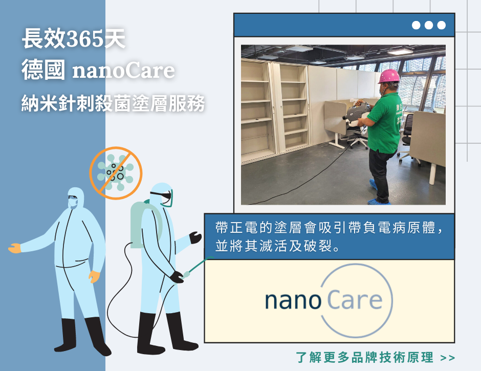 nanoCare 的獨特之處在於其納米產品級的抗菌塗層帶有正電荷,能主動吸引帶負電的病菌、病毒和黴菌等病原體,並通過銀離子技術破壞其細胞結構,使其滅活。這種技術不僅長效可靠,而且在持續殺菌的同時不會對環境和使用者產生任何不良影響。