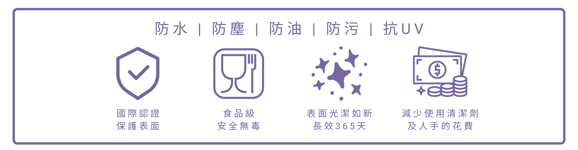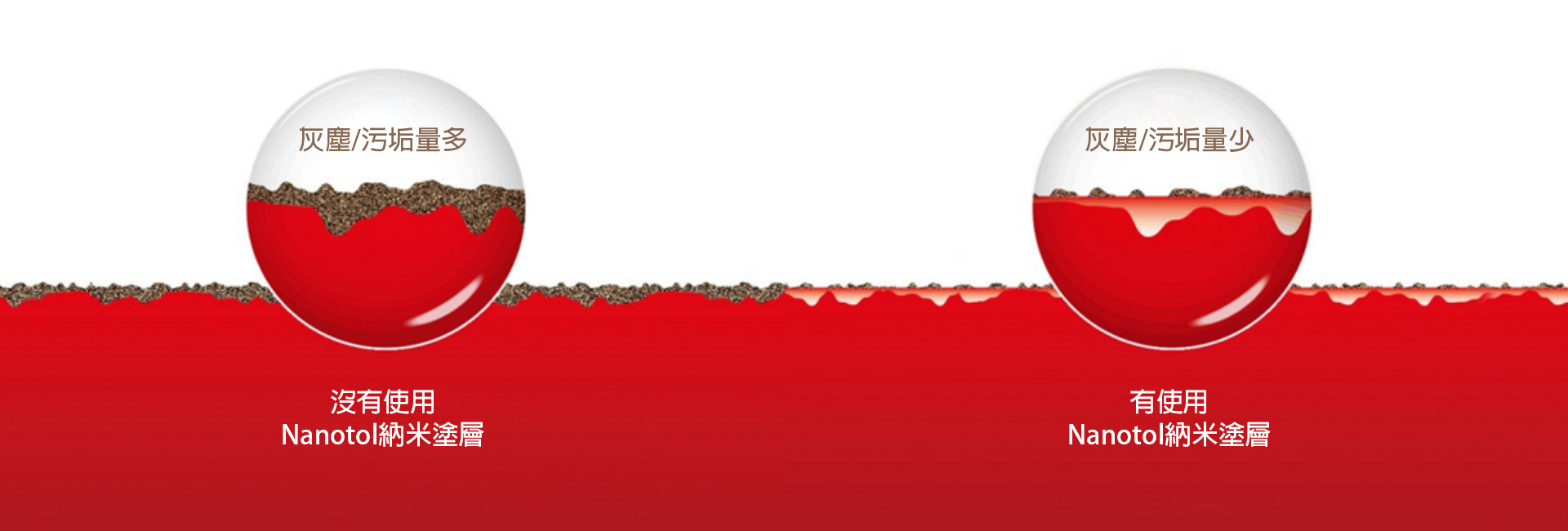 Nanotol是納米塗層科技最新的發展。產品為食品級認證,安全衛生,並環保無毒。 使用後,表面能達致防水、防污、防塵、防油、抗uv效果,