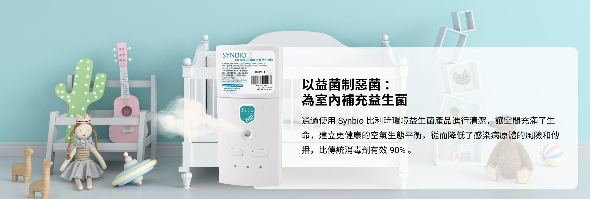 利用自動消毒機器人配上比利時 Synbio 空氣益生菌原液