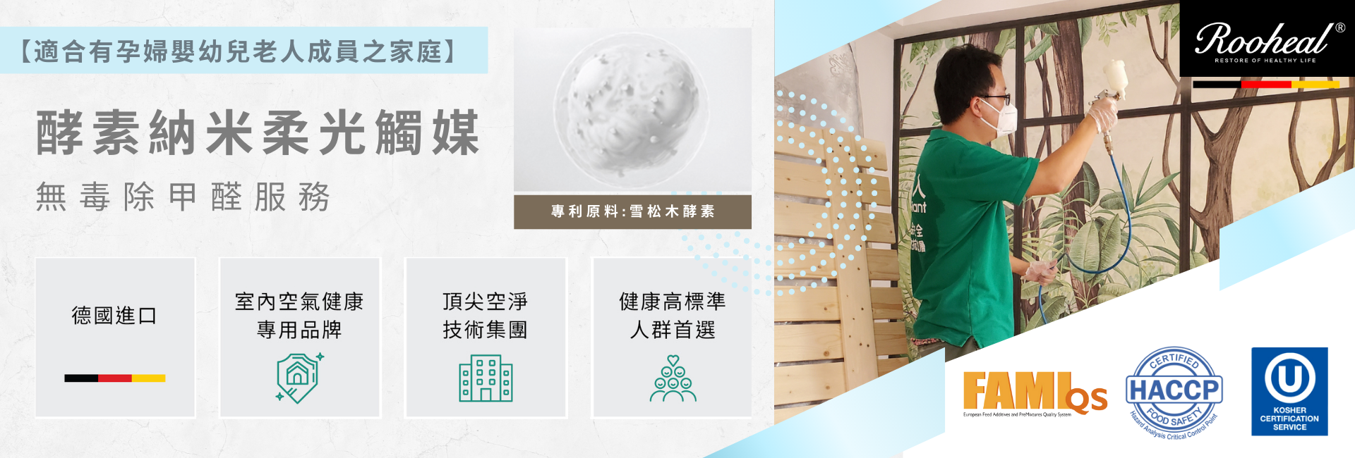 考慮到室內LED燈的光波不足,技術更配合天然酵素,確保甲醛即使在低光環境下亦能被徹底分解。