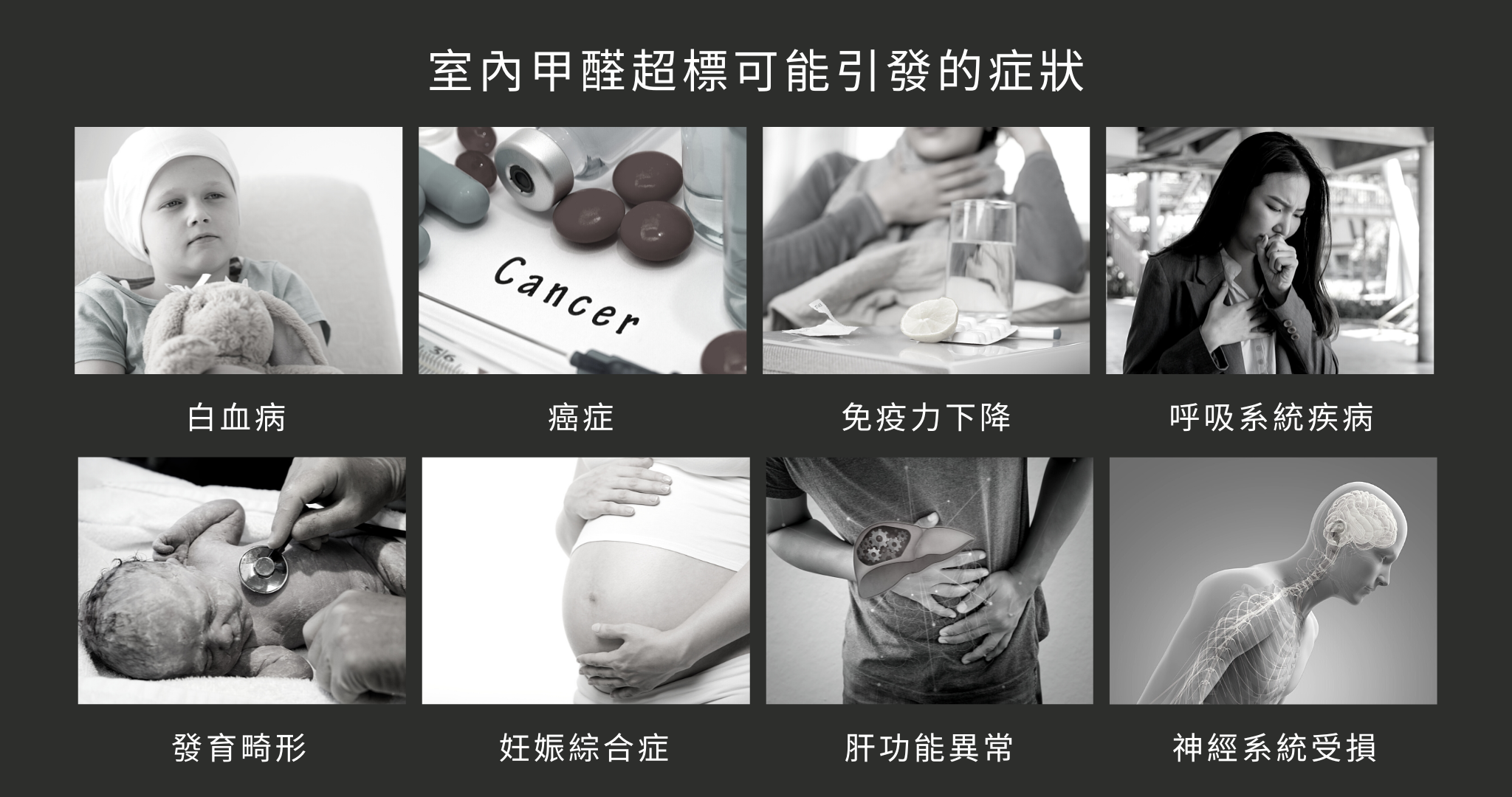 甲醛是一種揮發性有機化合物(VOC),會隨著時間從建材及家具中釋放到空氣中,潛在危害包括: