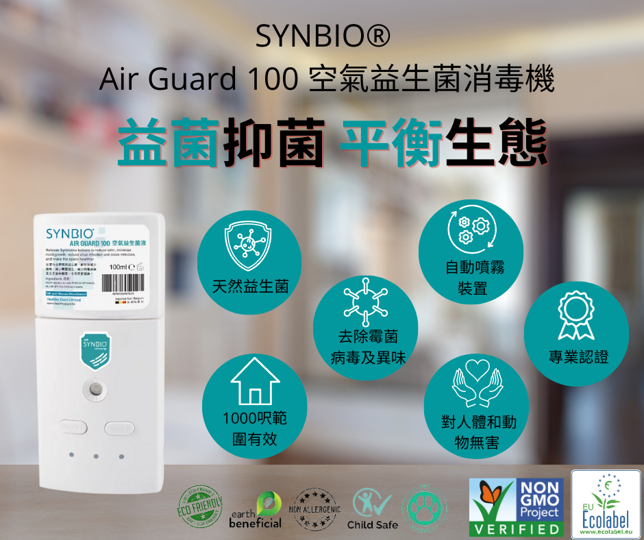 比利時進口的Air Guard 100 是一項專利技術,通過超聲波將益生菌原液霧化到空氣中,全自動運行,淨化空氣和表面停留的所有有害顆粒。