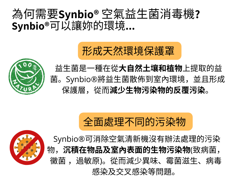 比利時環境益生菌含有豐富的合生元(益生菌和益生元的組合),可持續和安全地將空氣淨化,幫助恢復室內環境的生態平衡,從而保障環境和人體健康。