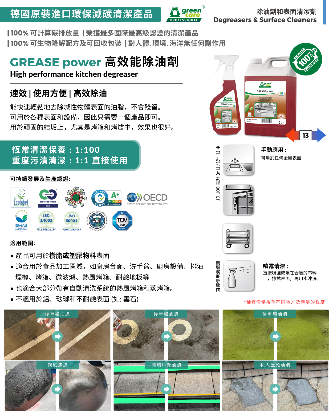 ■ GREASE power 可用於各種表面和設備,單一產品使工作更輕鬆。