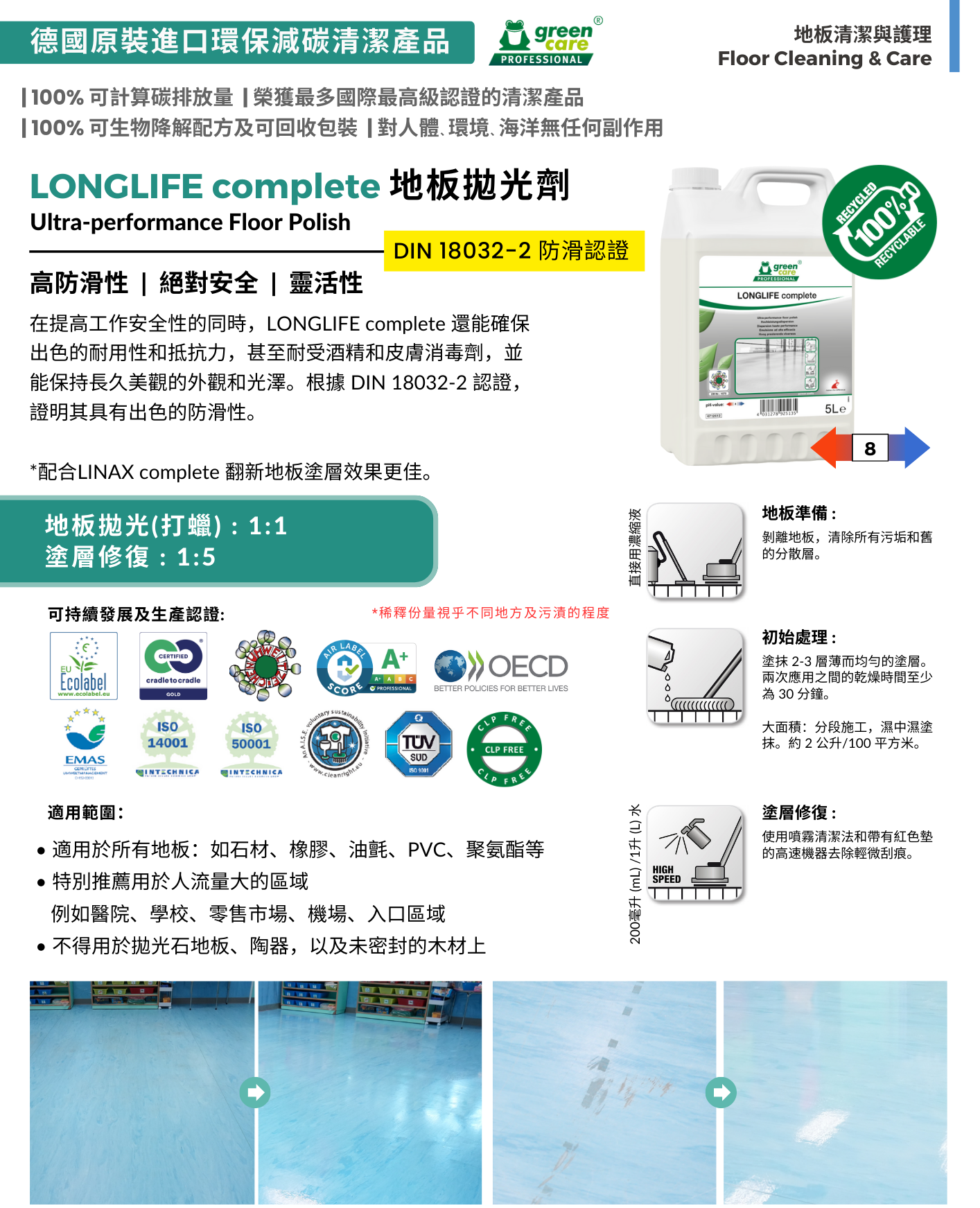 Green Care Professional ® LONGLIFE complete 地板拋光劑