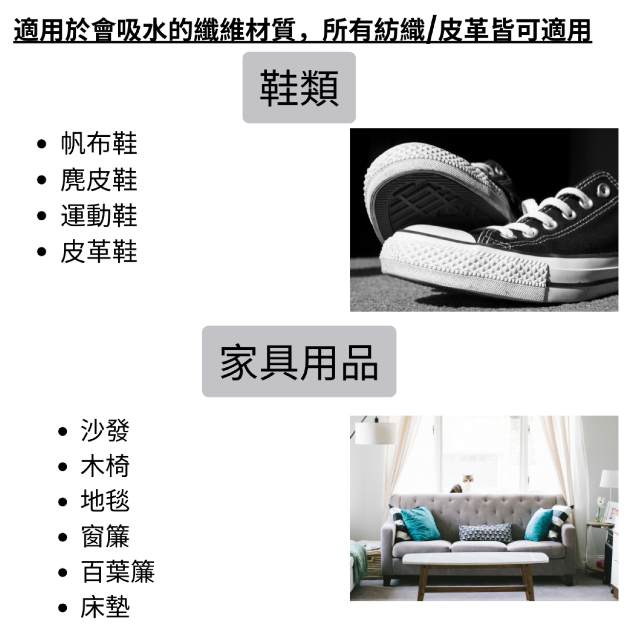 以紡織面料的運動鞋作例子,一支150ML的Nanotol Textile大約可使用7-9雙。