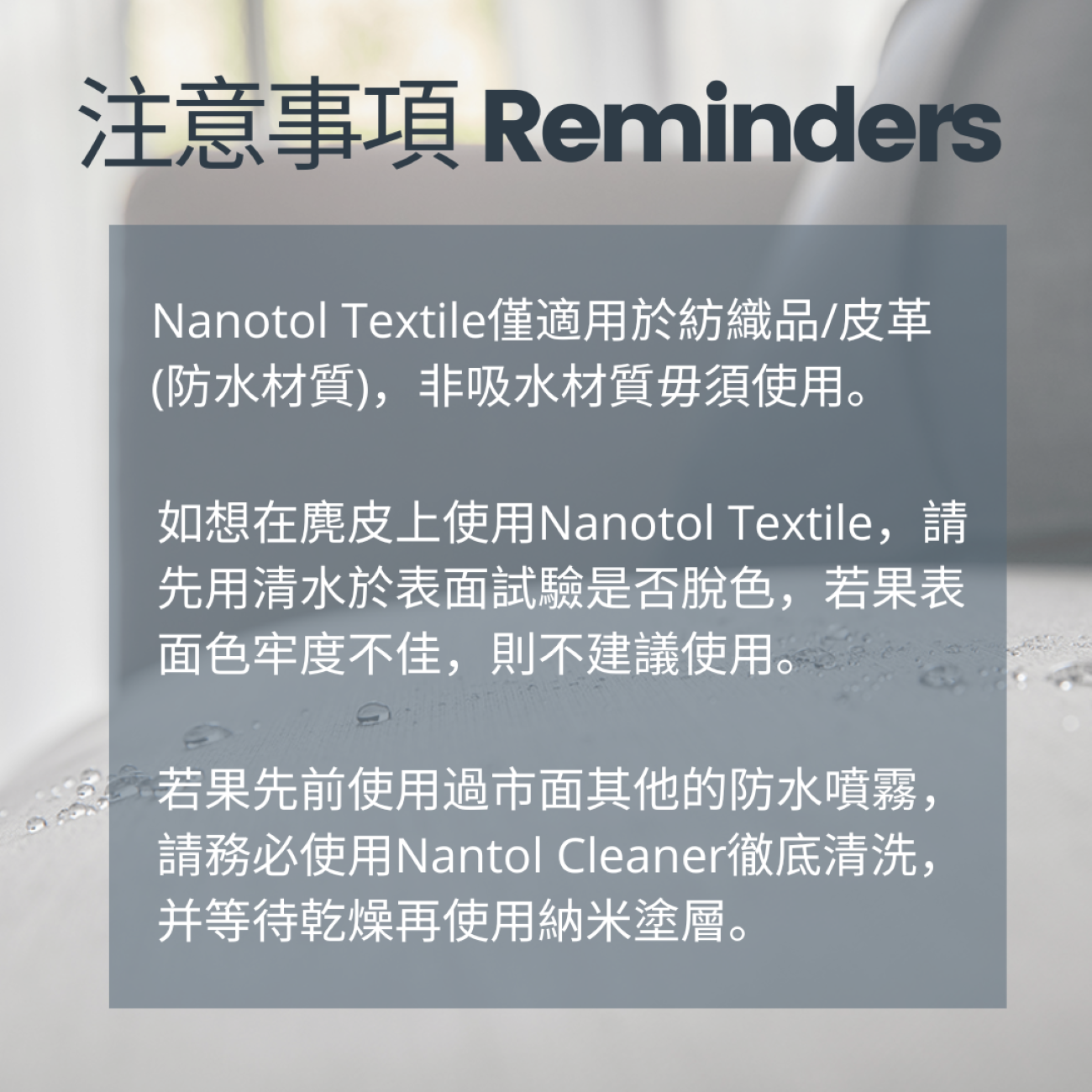紡織品/皮革納米塗層 Nanotol Protector (Textiles) *收藏家指定